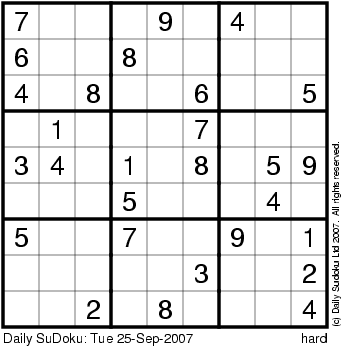 The Daily SuDoku: Tue 25-Sep-2007