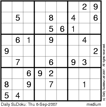 The Daily SuDoku: Thu 6-Sep-2007