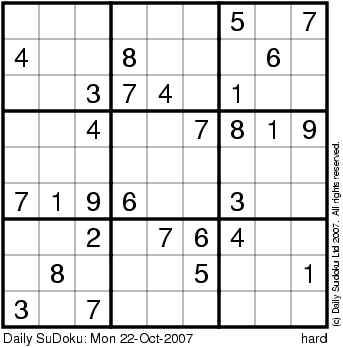 The Daily SuDoku: Mon 22-Oct-2007