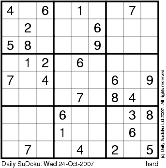 The Daily SuDoku: Wed 24-Oct-2007