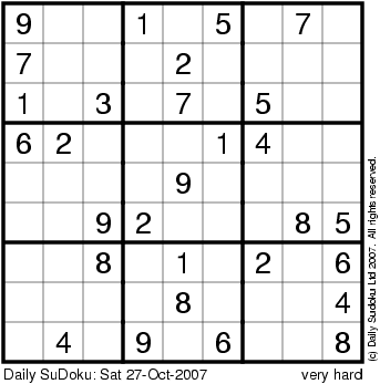 The Daily SuDoku: Sat 27-Oct-2007