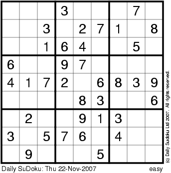 The Daily SuDoku: Thu 22-Nov-2007