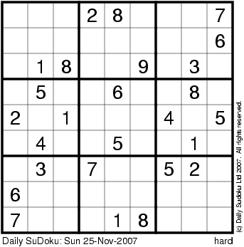 The Daily SuDoku: Sun 25-Nov-2007
