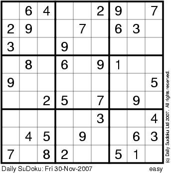 The Daily SuDoku: Fri 30-Nov-2007