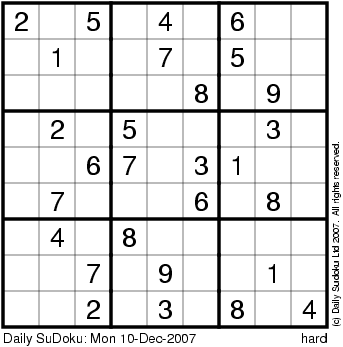 The Daily SuDoku: Mon 10-Dec-2007