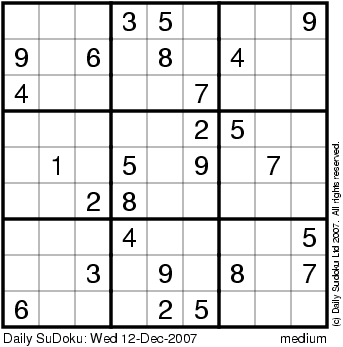 The Daily SuDoku: Wed 12-Dec-2007