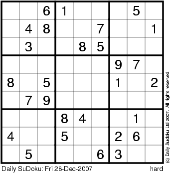 The Daily SuDoku: Fri 28-Dec-2007