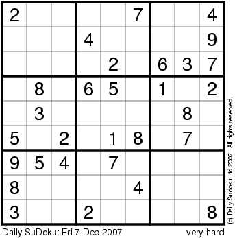 The Daily SuDoku: Fri 7-Dec-2007