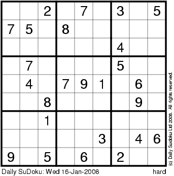 The Daily SuDoku: Wed 16-Jan-2008