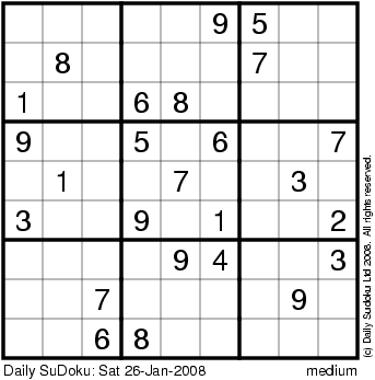 The Daily SuDoku: Sat 26-Jan-2008