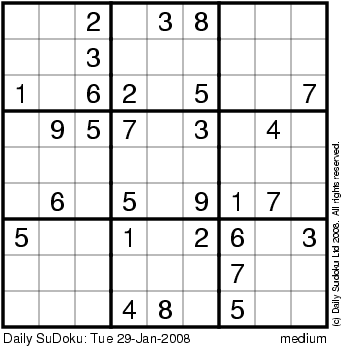 The Daily SuDoku: Tue 29-Jan-2008