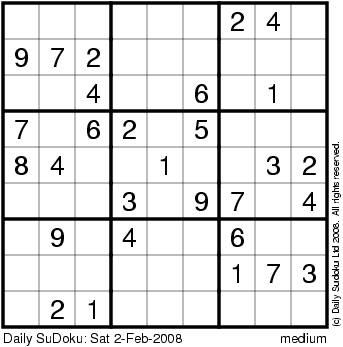 The Daily SuDoku: Sat 2-Feb-2008