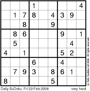 The Daily SuDoku: Fri 22-Feb-2008