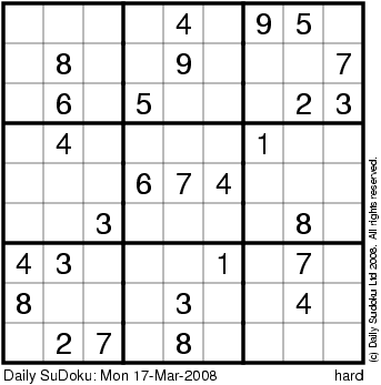The Daily SuDoku: Mon 17-Mar-2008