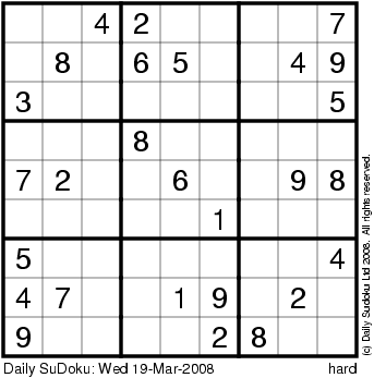 The Daily SuDoku: Wed 19-Mar-2008