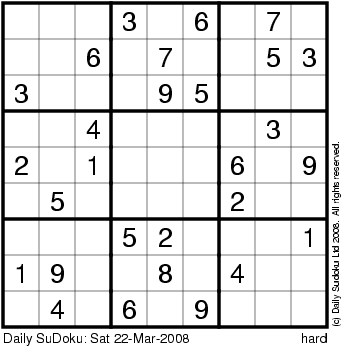 The Daily SuDoku: Sat 22-Mar-2008