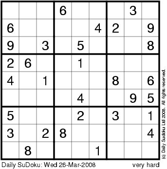 The Daily SuDoku: Wed 26-Mar-2008