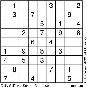 The Daily SuDoku: Sun 30-Mar-2008