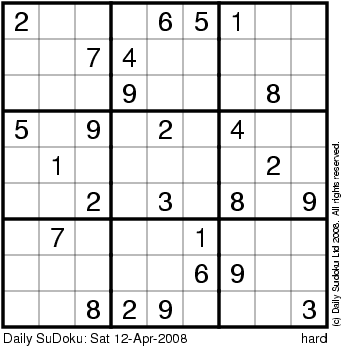 The Daily SuDoku: Sat 12-Apr-2008