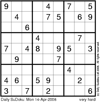 The Daily SuDoku: Mon 14-Apr-2008