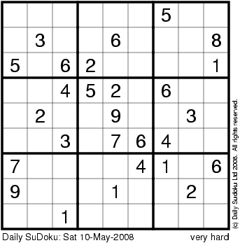 The Daily SuDoku: Sat 10-May-2008