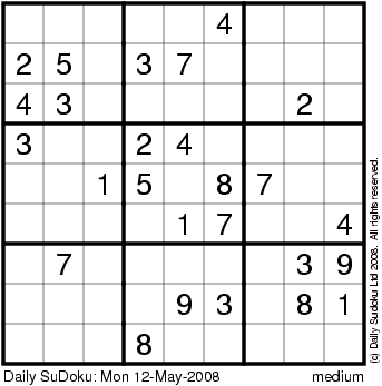 The Daily SuDoku: Mon 12-May-2008