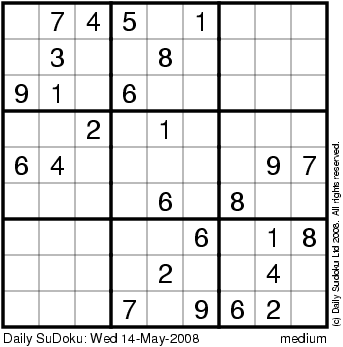 The Daily SuDoku: Wed 14-May-2008