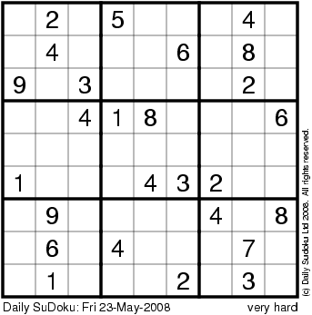 The Daily SuDoku: Fri 23-May-2008