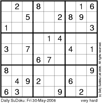 The Daily SuDoku: Fri 30-May-2008