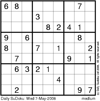 The Daily SuDoku: Wed 7-May-2008