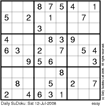 The Daily SuDoku: Sat 12-Jul-2008