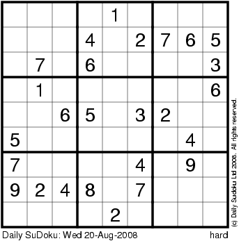 The Daily SuDoku: Wed 20-Aug-2008