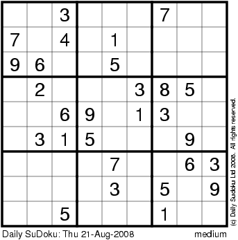 The Daily SuDoku: Thu 21-Aug-2008