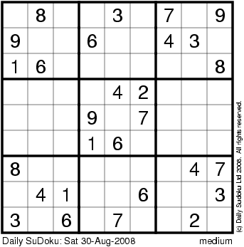 The Daily SuDoku: Sat 30-Aug-2008