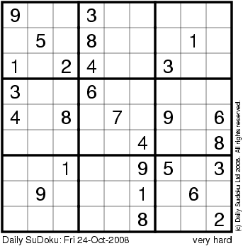 The Daily SuDoku: Fri 24-Oct-2008