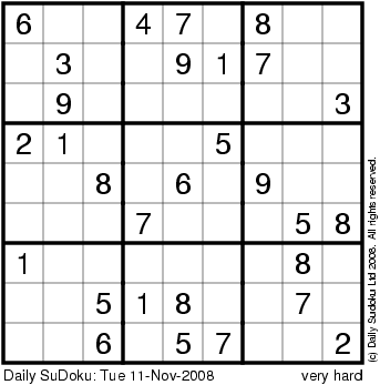 The Daily SuDoku: Tue 11-Nov-2008