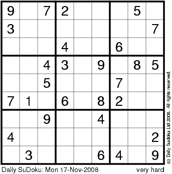 The Daily SuDoku: Mon 17-Nov-2008