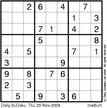 The Daily SuDoku: Thu 20-Nov-2008
