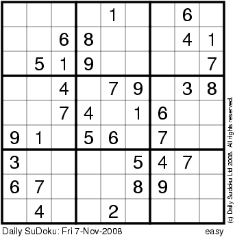 The Daily SuDoku: Fri 7-Nov-2008