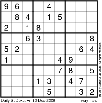 The Daily SuDoku: Fri 12-Dec-2008