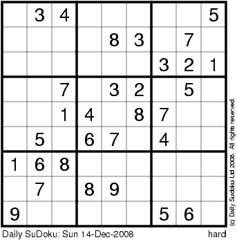 The Daily SuDoku: Sun 14-Dec-2008