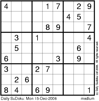 The Daily SuDoku: Mon 15-Dec-2008