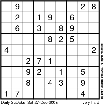 The Daily SuDoku: Sat 27-Dec-2008