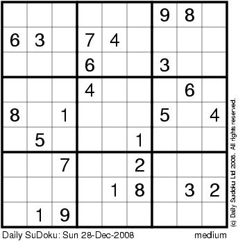 The Daily SuDoku: Sun 28-Dec-2008