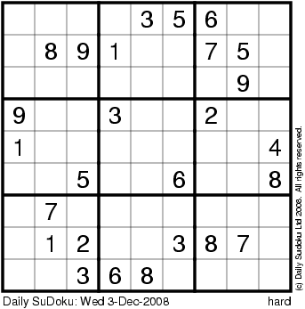 The Daily SuDoku: Wed 3-Dec-2008