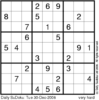The Daily SuDoku: Tue 30-Dec-2008