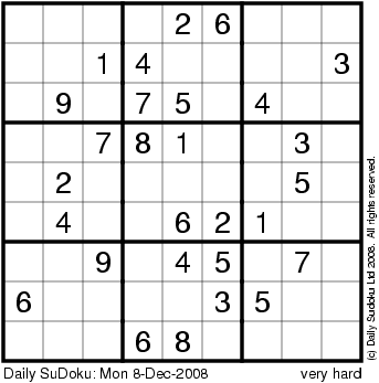 The Daily SuDoku: Mon 8-Dec-2008