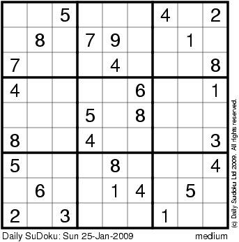 The Daily SuDoku: Sun 25-Jan-2009