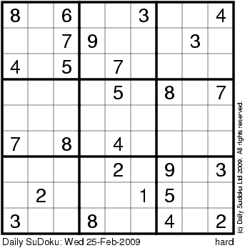 The Daily SuDoku: Wed 25-Feb-2009