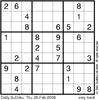 The Daily SuDoku: Thu 26-Feb-2009
